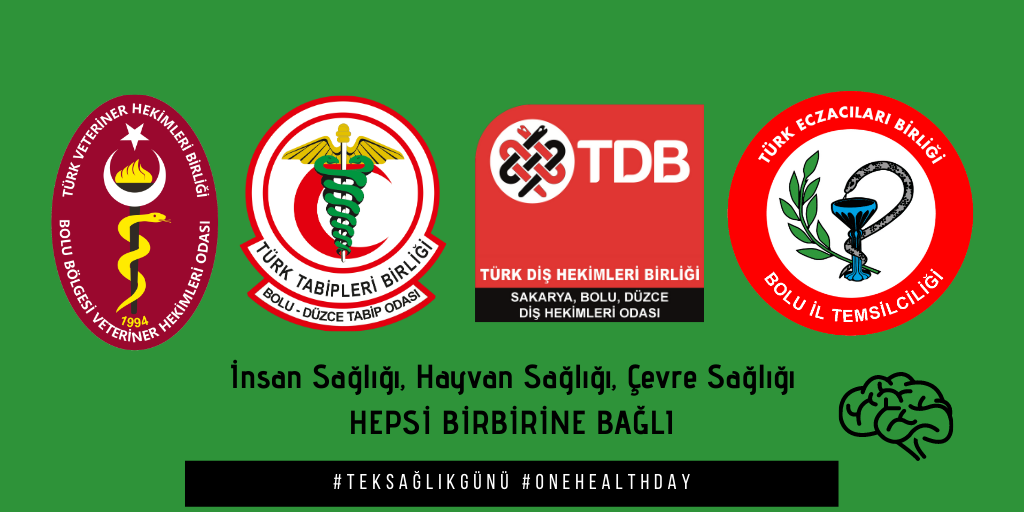Bolu Bölgesi Veteriner Hekimleri Odası, Sakarya Bolu Düzce Diş Hekimleri Odası, 20. Bölge Sakarya Eczası Odası Bolu İl Temsilciliği, Bolu – Düzce Tabip Odası 3 Kasım Dünya Tek Sağlık Günü dolayısıyla ortak bir basın açıklaması yaptık. Tek Sağlık yaklaşımını anlatmak, farkındalık oluşturmak amacıyla dünyada her yıl 3 Kasım ‘Tek Sağlık Günü’ (#OneHealthDay; #TekSağlıkGünü) olarak kutlanmaktadır. “Tek Sağlık; bulaşıcı hastalıklara odaklanan; insan, hayvan ve çevre ilişkileri bağlamında toplum sağlığına hizmet eden bir yaklaşım olmasının yanı sıra, zoonotik hastalıklara (hayvandan insana veya insandan hayvana geçen) yönelik multidisipliner veya interdisiplinler (birçok farklı meslek mensubunu bir araya getiren) yaklaşımları destekleyen bir kavramdır. Kısaca hatırlamak gerekirse 1800’lü yıllardan bu yana bilim insanları tarafından dile getirilen ‘Tek Sağlık’ yaklaşımı son yıllarda daha önemli hale gelmiştir. Çünkü pek çok etken; insan, hayvan, bitki ve çevre etkileşiminin olumsuz yönde değişmesine neden olmuştur. Artan insan ihtiyaçları, tüketime dayalı sözde hayat tarzları, doğa okur-yazarlığının olmaması gibi bilinçsiz davranışlar, plansız kentleşme, iklimde ve arazi kullanımında değişimler, yeni kaynak arayışları sebebiyle yaban hayatına daha fazla ve yanlış müdahaleler gibi pek çok sebepten dolayı insanlarla hayvanlar arasındaki ve içinde bulundukları ortak çevre ile ilişkilerinde bozulan denge ‘Tek Sağlık’ yaklaşımını yeniden dünya gündemine taşımıştır”.